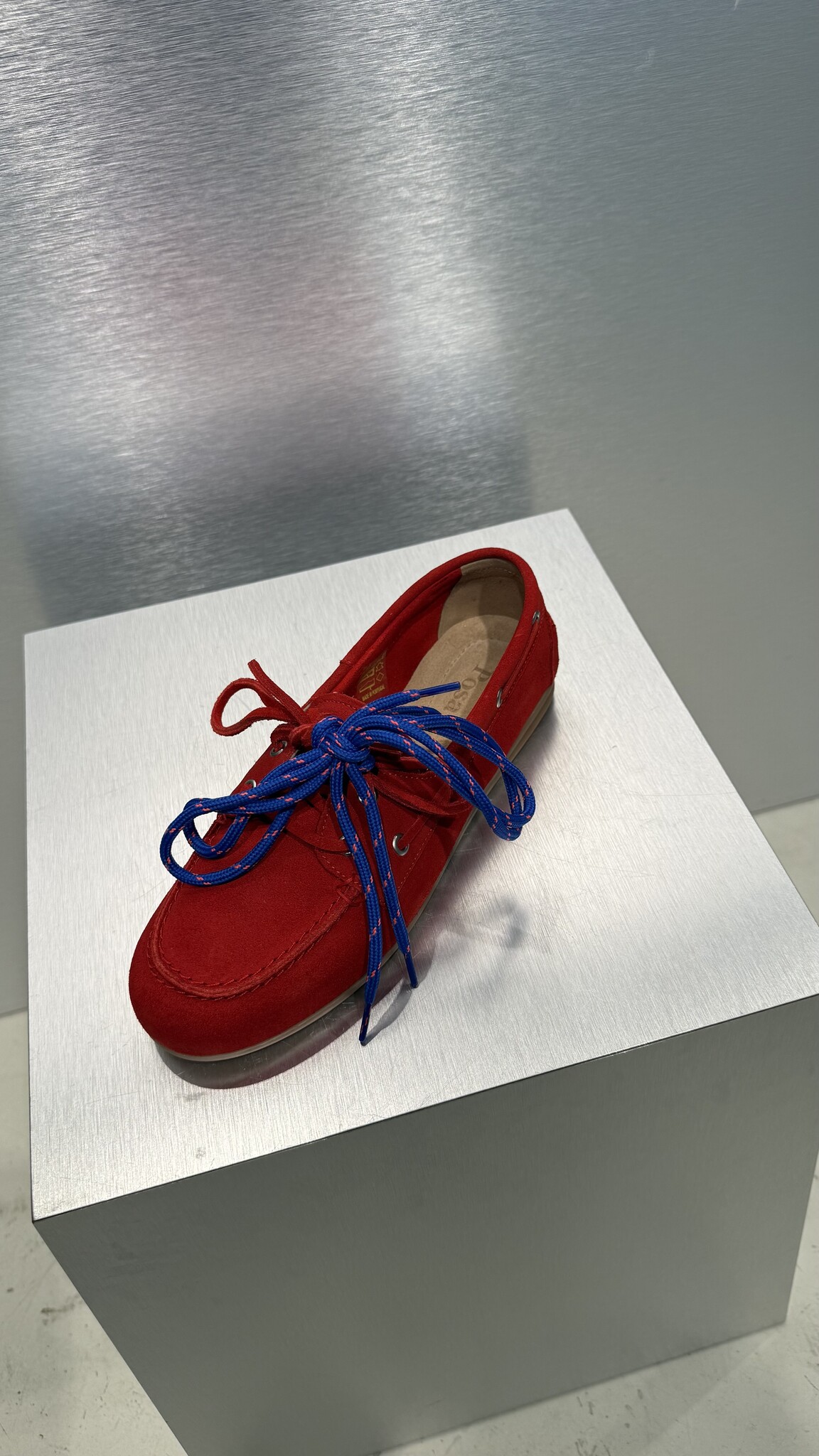 - Red suede loafers
