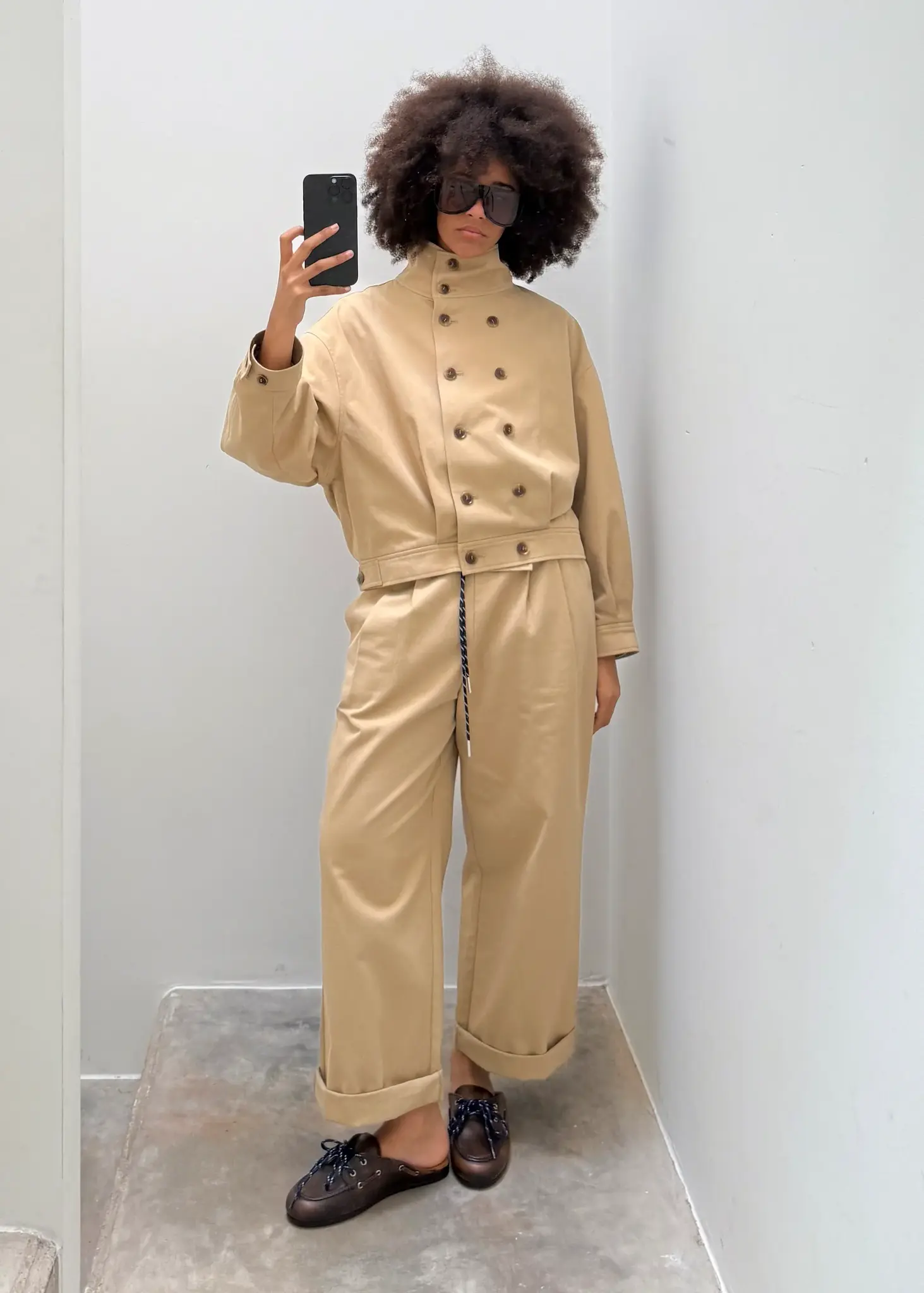 - Featuring a buttoned row and stand-up collar
