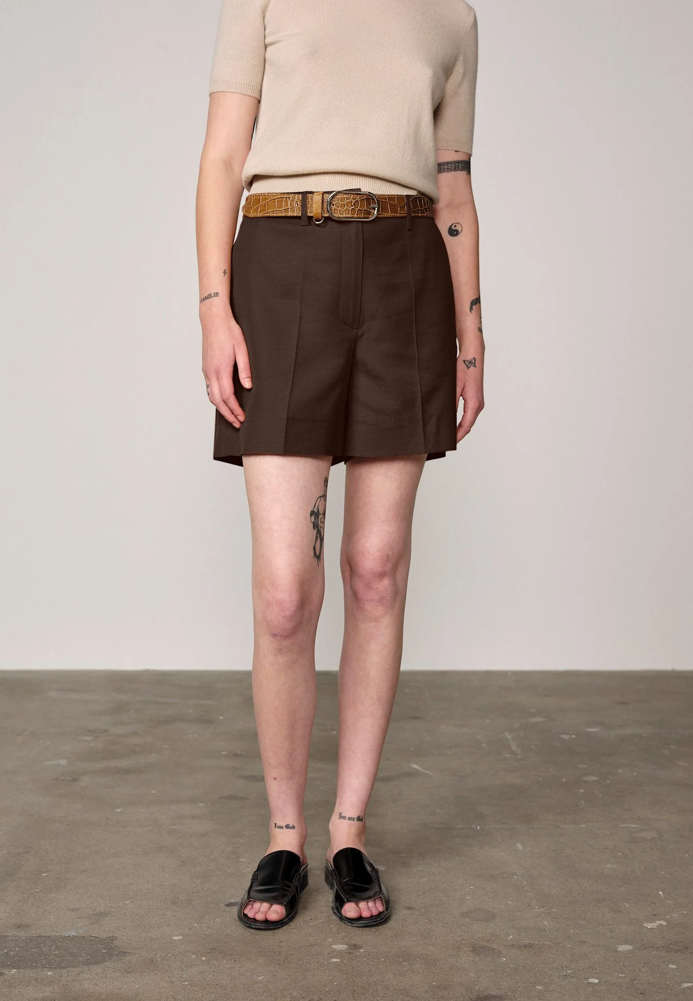 - Brown shorts