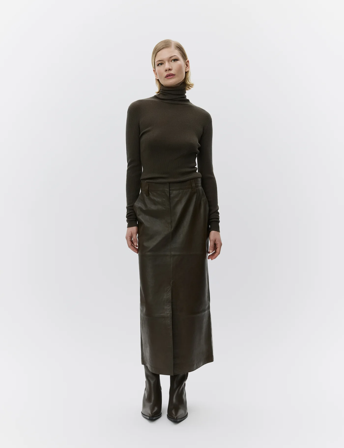- Khaki turtleneck